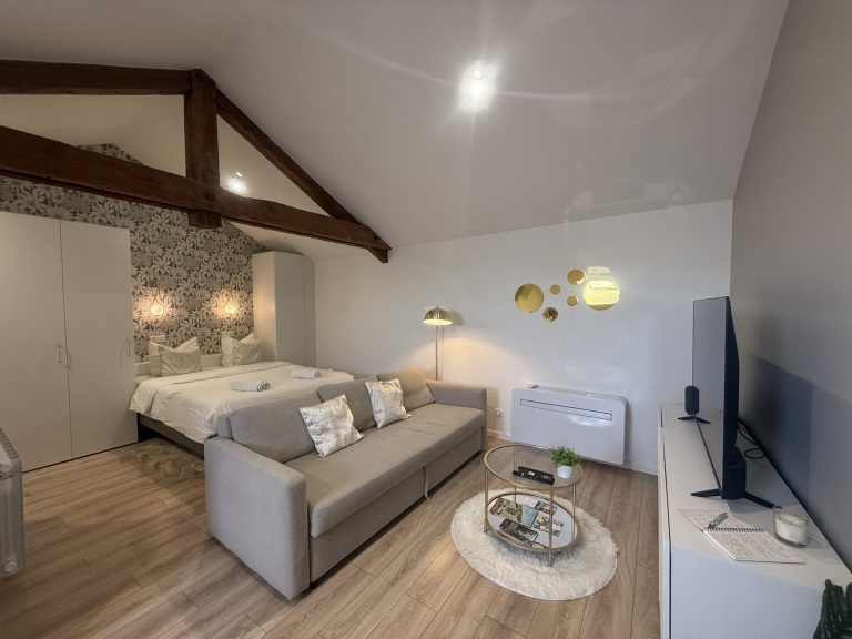 Perché sous les toits, ce charmant appartement rénové et décoré avec soin vous offre un cocon cosy, baigné de lumière grâce aux velux. En plein cœur de la ville, vous profitez d’un véritable nid douillet où calme, charme et style se mêlent parfaitement. Idéal pour une escapade en couple, un week-end entre amis ou un séjour pro, il incarne l’équilibre parfait entre authenticité et confort citadin.